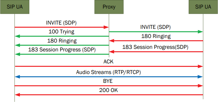 Once the proxy knows where to direct the INVITE message, it will forward the message to the appropriate device in the appropriate manner. The softphone or phone being called will respond to the proxy and then the proxy will in turn respond to the caller. When the details of the upcoming call are established, the proxy’s response to the caller will be a RINGING message.