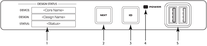 - ID button – locates the Core in Q-SYS Designer GUI and Configurator