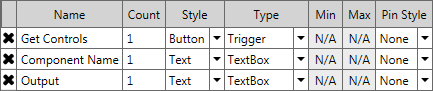 5. For each row, in addition to the name representing that row, choose the count of controls, a style, type, Min/Max (if applicable) and Pin Style